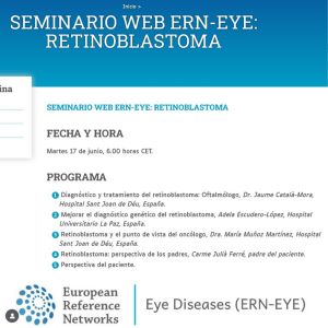 La presidenta de la Fundació La Nineta dels Ulls va participar com a ponent al seminari internacional “ERN-EYE Webinar: Retinoblastoma”, juntament amb el Dr. Jaume Català (Hospital Sant Joan de Déu), la Dra. Adela Escudero i la Dra. María Muñoz.